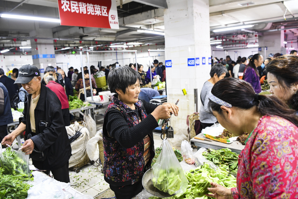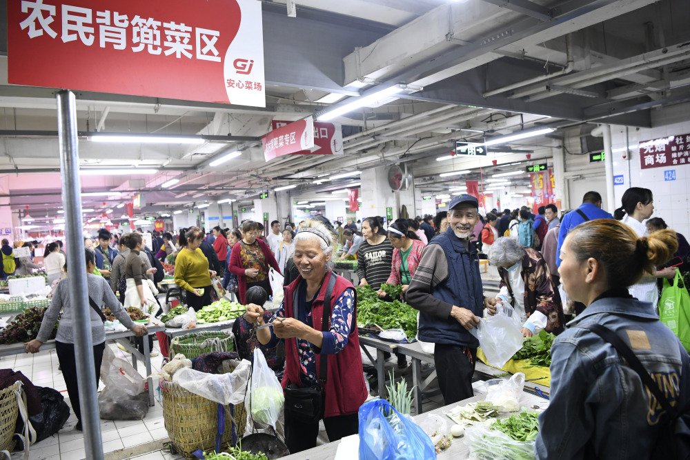 3月27日,市民在重庆市江北区新民乐安心菜场“农民背篼菜区”选购农产品。新华社记者 王全超 摄