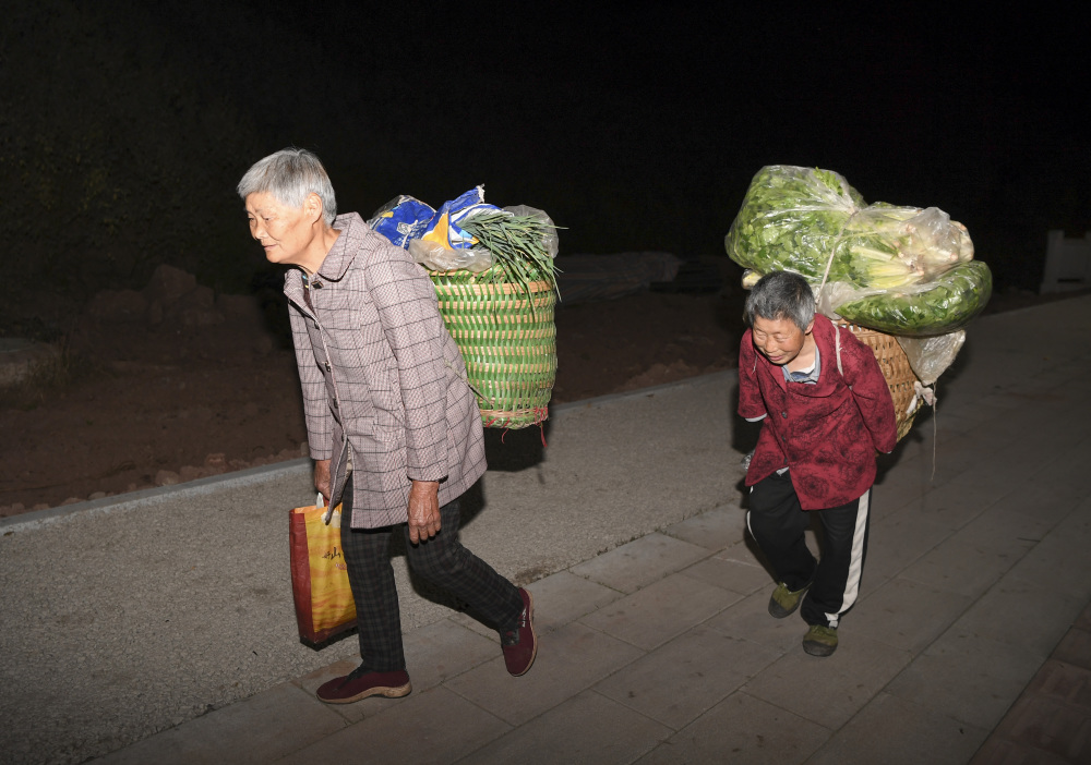 3月27日清晨,渝北区石船镇角口村村民背着蔬菜,前往重庆轨道交通4号线二期石船站乘车。新华社记者 王全超 摄