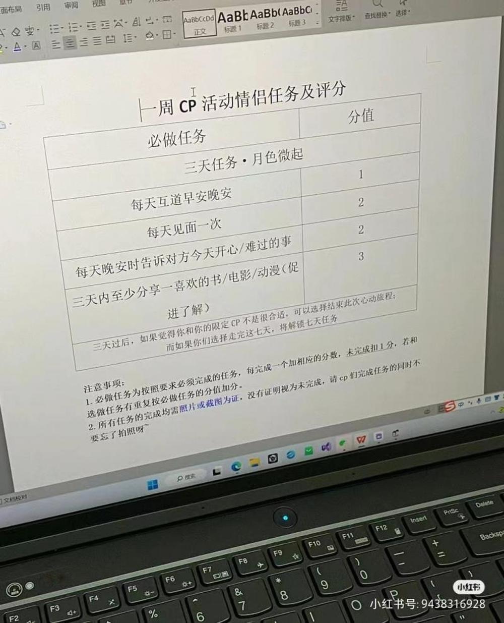 对此,小蕊的观点是,“一周CP”的意义在于为异性交友提供了可能性。毕竟,如果无缘无故要求你与一名异性一起逛一次超市,很多人会觉得暧昧,难以接受。然而,“一周CP”提供了一个背景和前提,使得这些小互动变得合理,至少不那么尴尬。