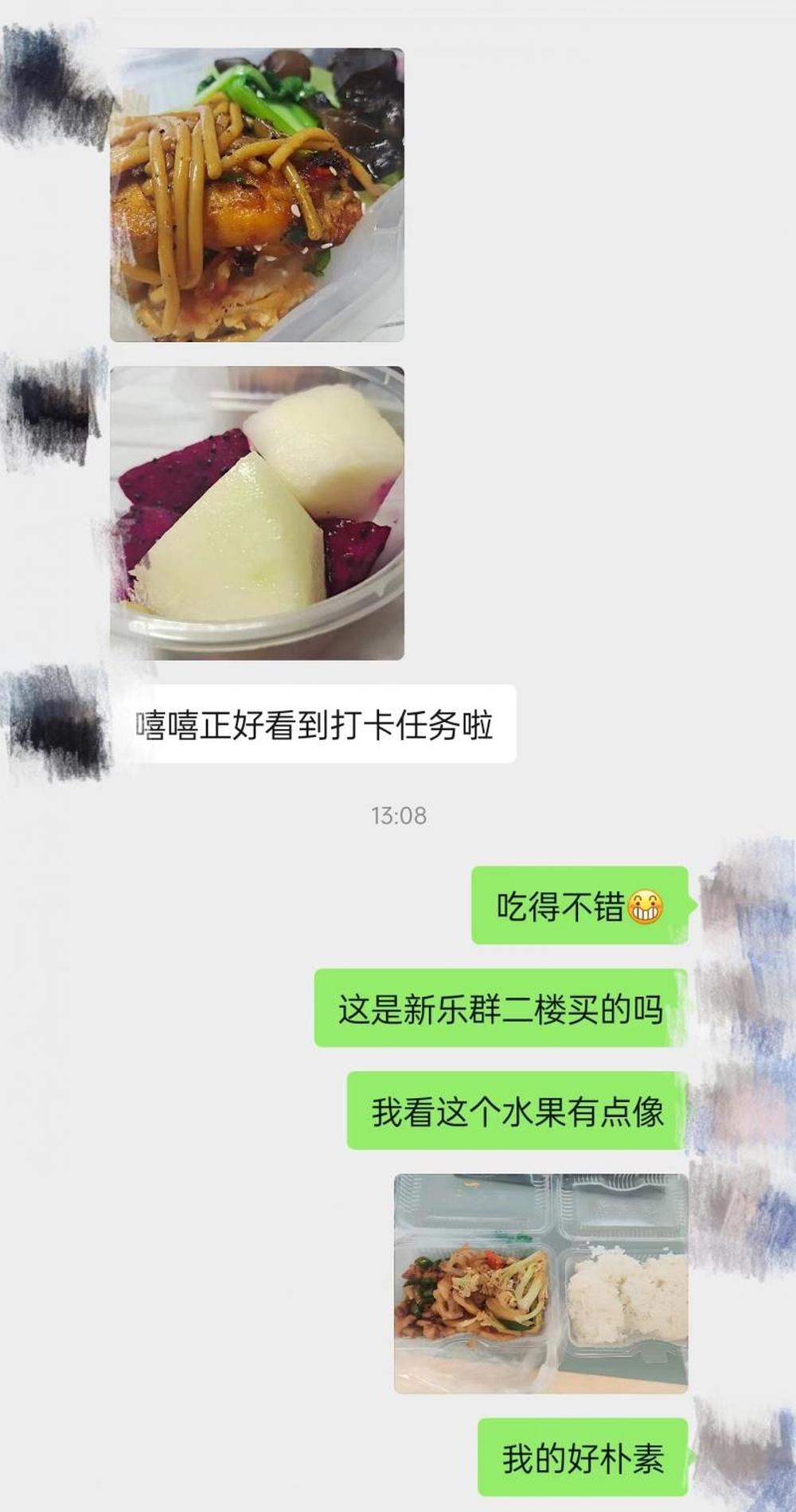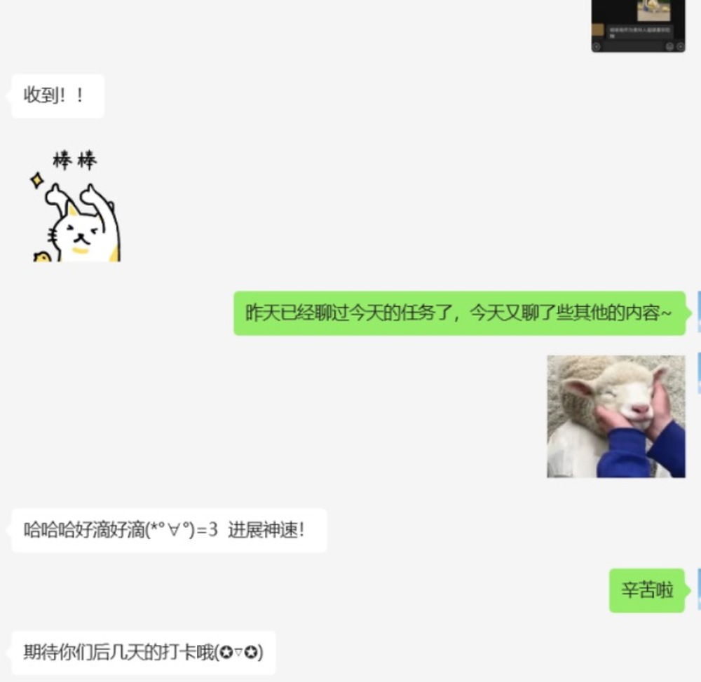从他们在群组内的回复中可以看出,两人都非常有礼貌,认真地完成每日任务。期间,他们还一起跑步、为对方买奶茶,还会为对方搭配穿搭。