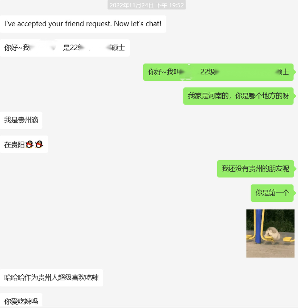 但在看完对方的朋友圈照片后,顾山觉得这个师妹并不是他喜欢的类型,于是两人只聊了三天,便草草说拜拜了。