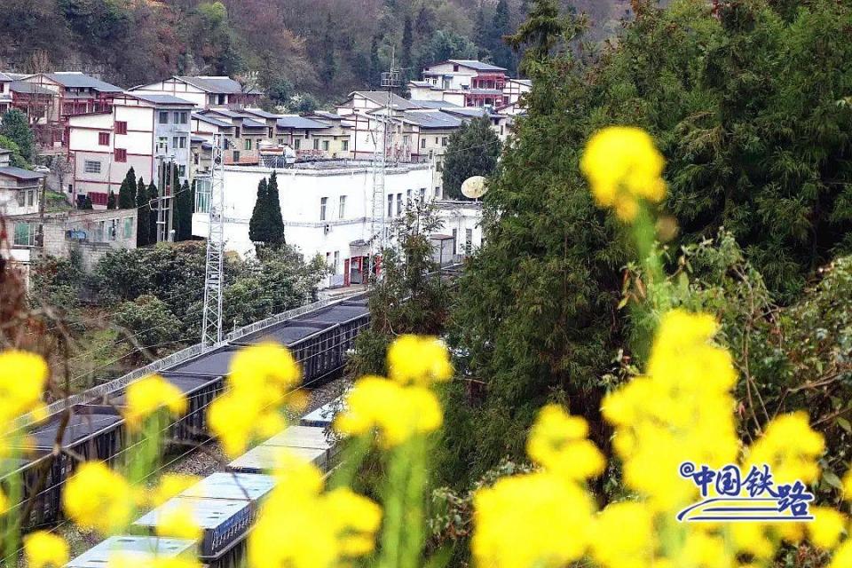 春天,花龙门站旁的油菜花尽情盛开,在春风的吹拂下掀起金色波浪。飞驰的复兴号和满载货物的货运列车都从这里驶过。花龙门站犹如忠诚的卫兵,守护着成昆铁路,向来往的旅客诉说着春天的故事。