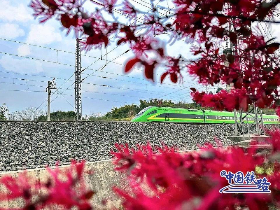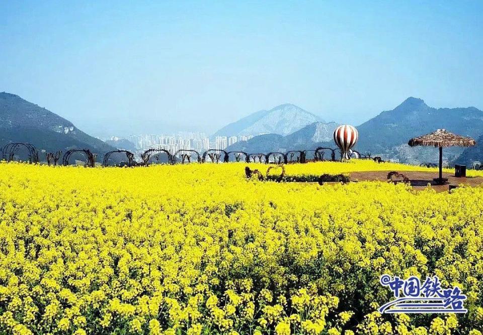 每年春天,金色的花海和“慢火车”、山峦、车站、村寨勾勒出一幅幅移动的田园春景,吸引众多旅客到红花园站打卡美丽的油菜花田。