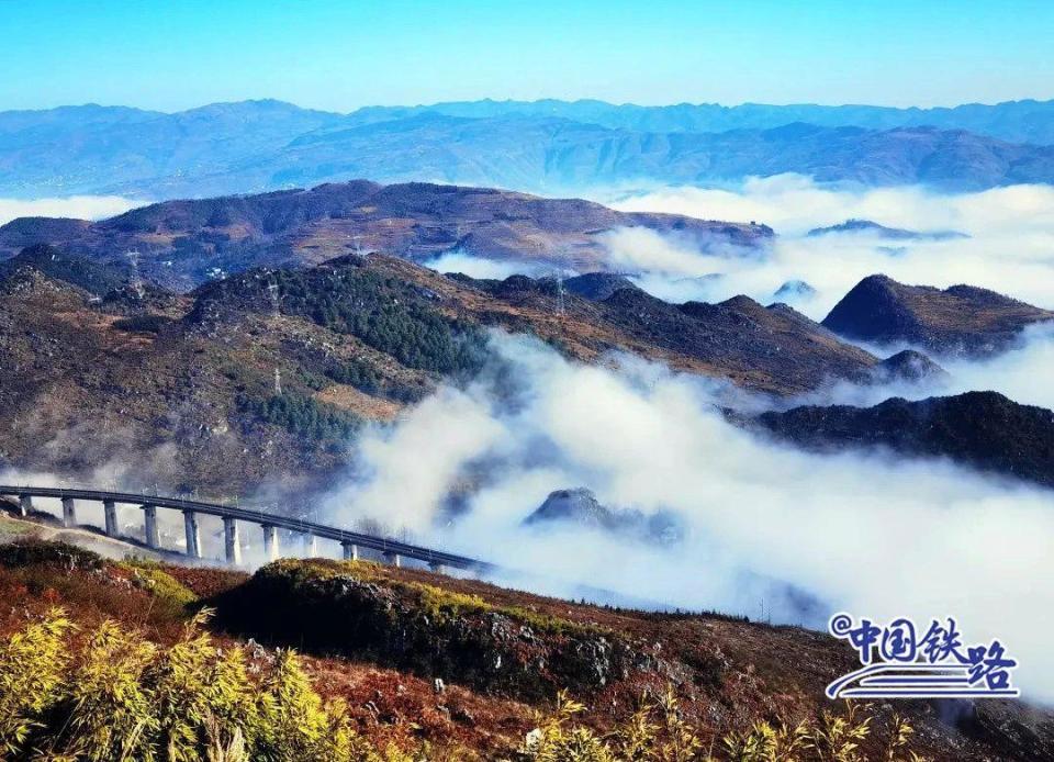 梅花山是贵州省六盘水市钟山区西郊的一座山,因满山的红梅花而得名。作为当地重要的旅游资源,吸引无数摄影爱好者到此拍摄云海、雾山以及日出日落,被誉为众多摄影家的创作基地。位于乌蒙山巅的梅花山站,就藏在这崇山峻岭,云遮雾绕中。