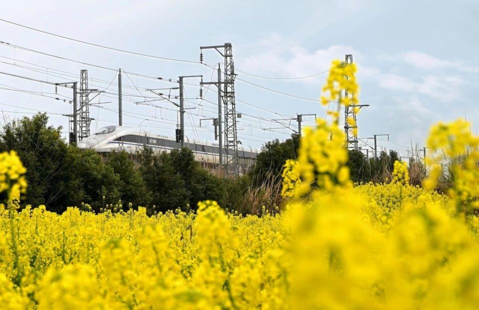阳春三月春意暖,青莲站周边的油菜花、桃花陆续开放,一片春意盎然,令人神往。此时,盛开的油菜花海与镶嵌其间的西成高铁相互掩映,构成一道美丽的风景线。