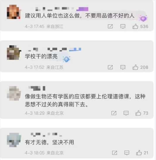 另外,在兰州大学官微留言中,从3日开始已经几乎被众多网友刷屏。多数网友希望兰州大学方面采取慎重态度,有网友留言“不能录用品行恶劣学生”“德智体,德在第一”。