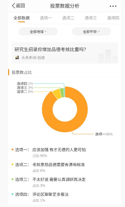 针对南大刷掉虐猫考生一事,截至4月6日中午,新浪微博一项针对数万人参与的“研究生招录应增加品德考核比重吗”调查显示,90%的网友认为,应该加强这方面的考核比重。