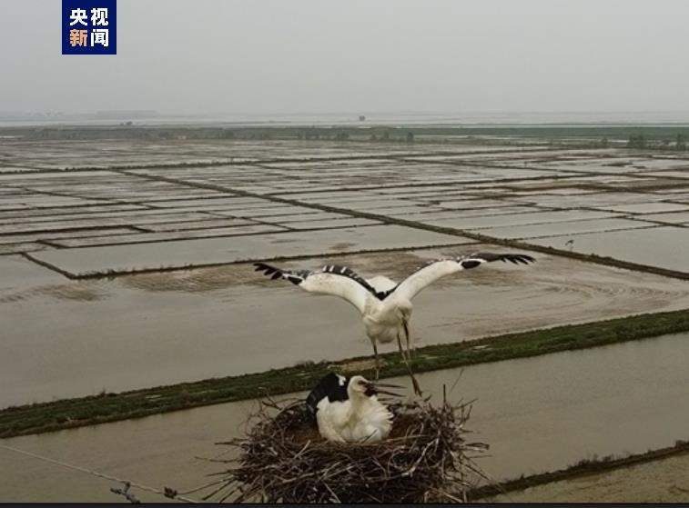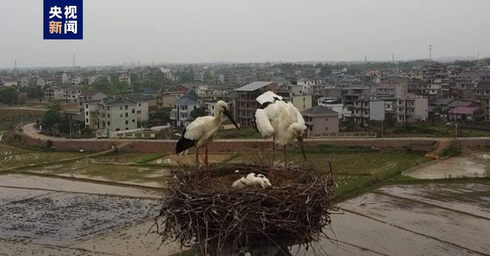 鄱阳湖湿地今春首批东方白鹳幼鸟成功孵化