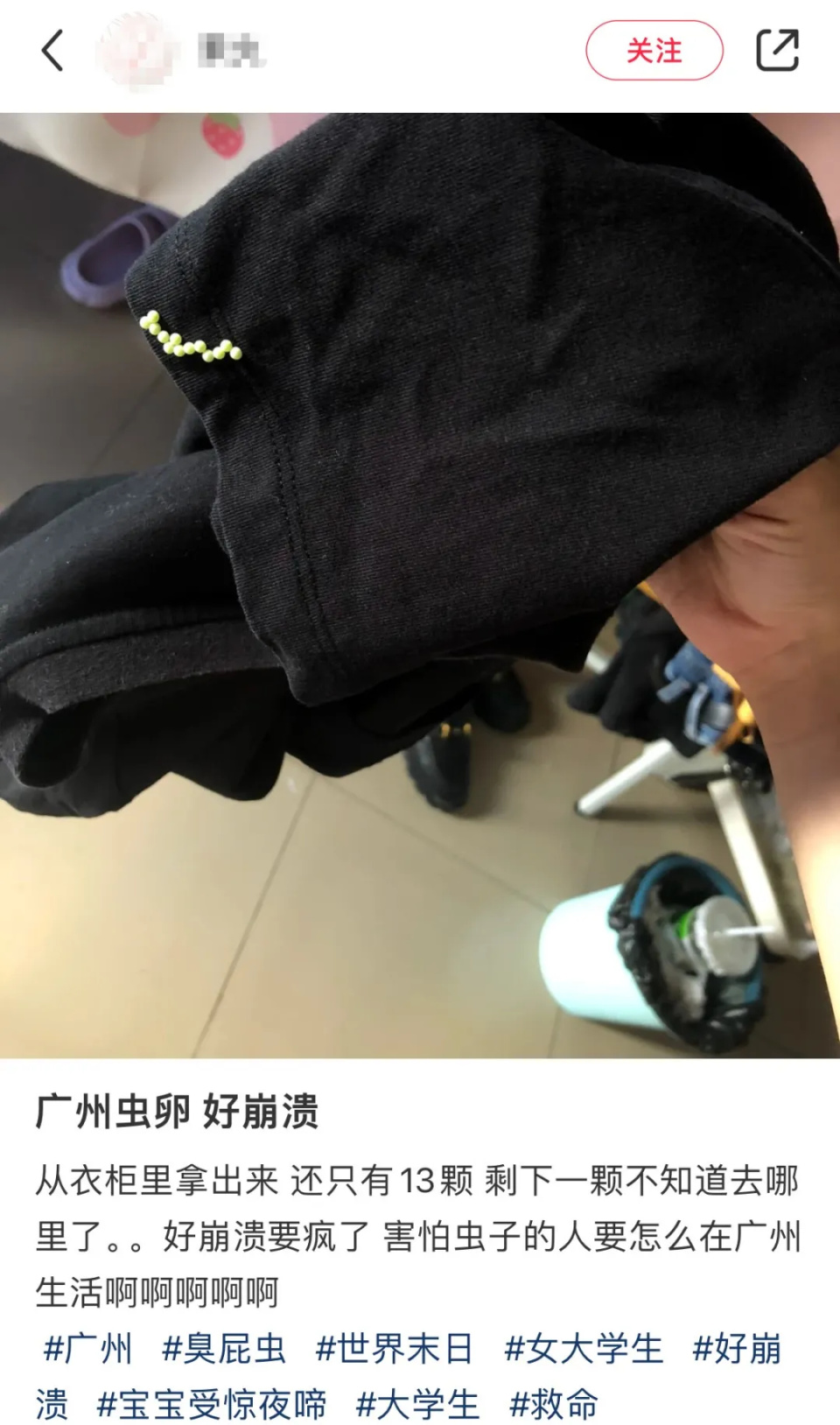 华南农业大学昆虫学系陆永跃表示,臭屁虫每年三月下旬或四月初,气温升高时,就是这类昆虫的产卵季节。但其一般不会入室,而在衣物上产卵,只是母虫“失误”或飞不动了所致,衣物上的虫卵不会顺利变为成虫。