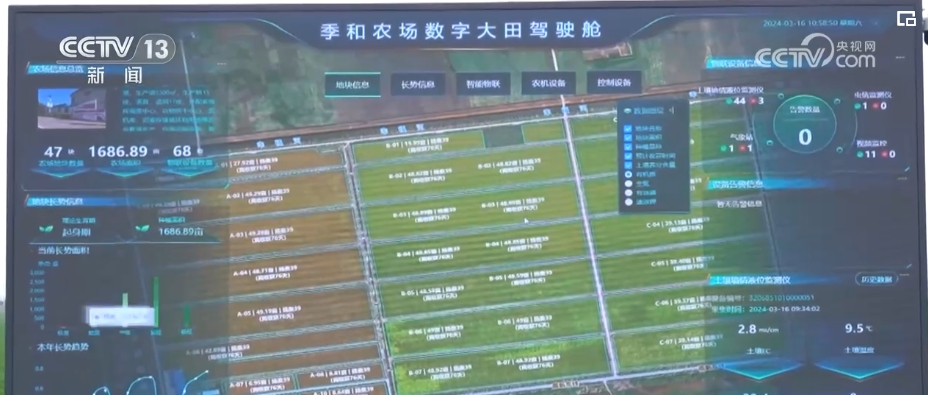 江苏南通海安季和农场的这块大屏是整个农场数字大田的“智慧大脑”。在这里每一块地拥有自己的专属信息和数字编码,划分得整整齐齐,拥有专属“身份证”。