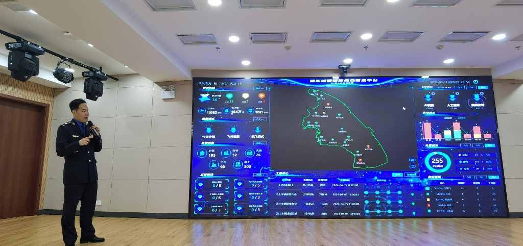 记者在发布会现场看到,浦东城管智能综合信息平台“大屏”上展现了当天的一则实时信息——今天凌晨,在“宣桥机场”发现了一起夜间施工。浦东新区城管执法局信息指挥中心副大队长刘健平介绍,该“机场”并非人们平时所说的机场,而是在浦东新区范围内设置的16个无人机场,分别位于花木、张江、金桥、高行、三林、川沙、惠南、万祥、书院等街镇,通过数字化手段综合监管,覆盖了浦东新区80%的适航区域,总计850平方公里。