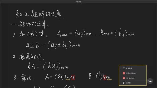 图中是美国麻省理工学院《矩阵求导与积分》课的真实授课场景。这是一节双师课,左边幕布上有老师线上接入,旁边要放幻灯片或手写板书;线下还有一位老师用纯板书的方式上课。