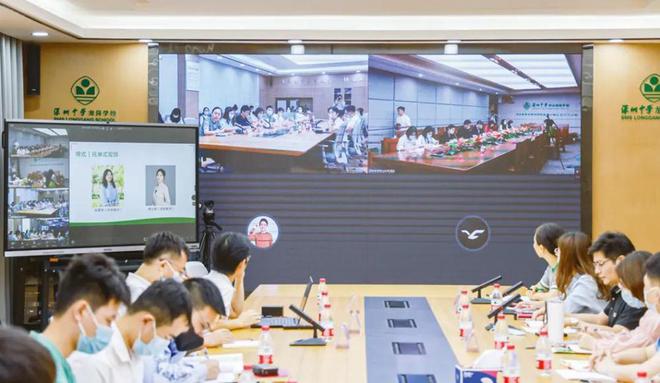 深圳中学龙岗学校,教研场景下,可以轻松将远程的讨论室、会议室接入到现场,远程老师和线下老师都可以看到PPT内容,线下老师也可以在LED屏幕清晰看到多个其他校区的老师。