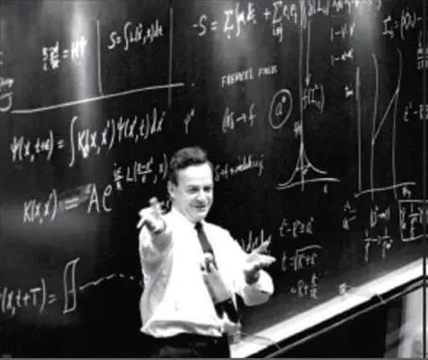 站在写满推演过程的黑板前,是著名物理学家的标志性姿势。手写的定理公式,解释着事物运行的规律,打开通往物理世界的奇妙大门。图为物理学家RichardPhillipsFeynman的“黑板肖像”。
