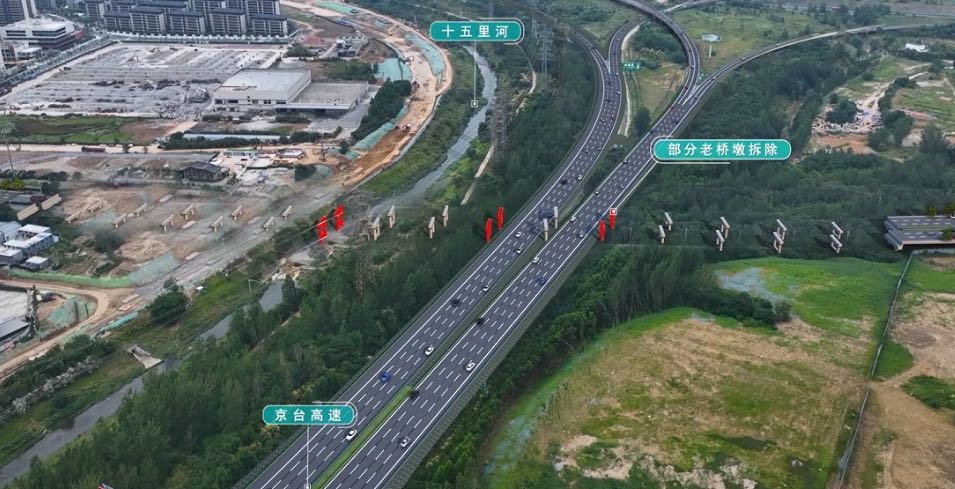 据此次施工方合肥城投介绍,该项目通过前期方案论证进行设计优化,最大限度利用现状沪汉蓉桥结构。此次施工采用“上部结构拆除,下部结构利用”的老桥改造提升方案。具体方案为:现状桥位于京台高速两侧桥墩、十五里河中央桥墩拆除重建,位于京台高速中央分隔带处桥墩整体保留利用,其余桥墩拆除老桥盖梁,墩柱保留利用。老桥下部结构利用共计节约建设投资1000万元以上。