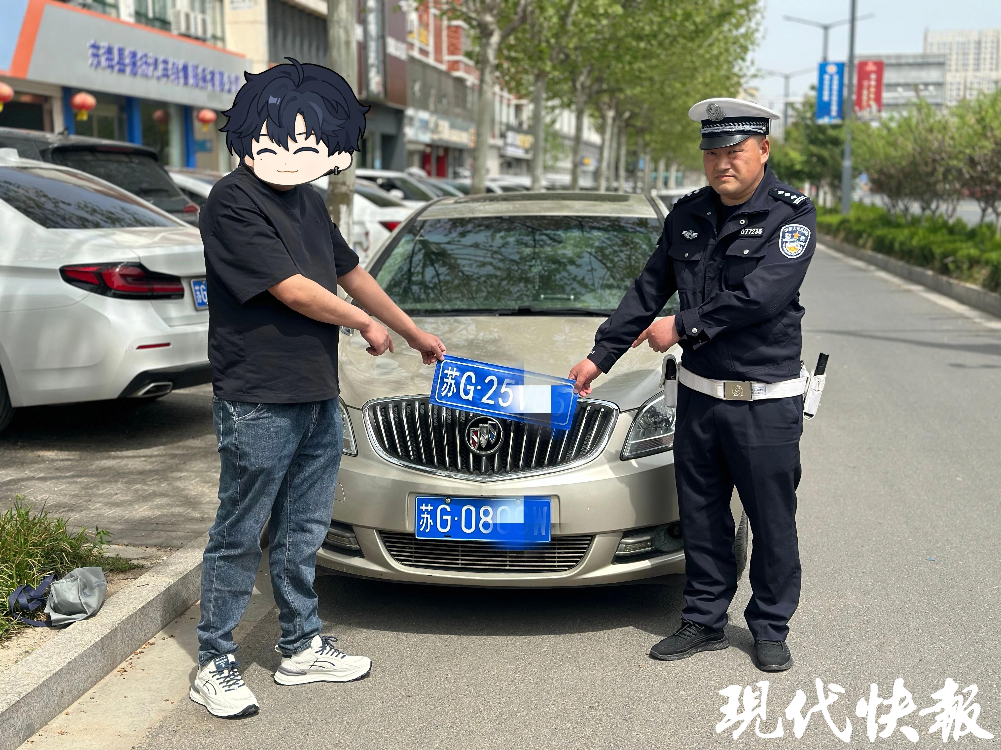 4月16日下午,东海县公安局交警大队牛山中队民警在城区巡逻,当巡逻至城区明珠路时,发现停放在路边的一辆棕色轿车车牌存在异常。“我上前摸了摸车牌,发现竟是纸做的,我揭开后发现这张贴纸下才是真的车牌照。”由于该车涉嫌使用伪造、变造机动车号牌违法行为,民警一边对车辆前后车牌进行核实,一边通过查询并联系上了车主杨某。
