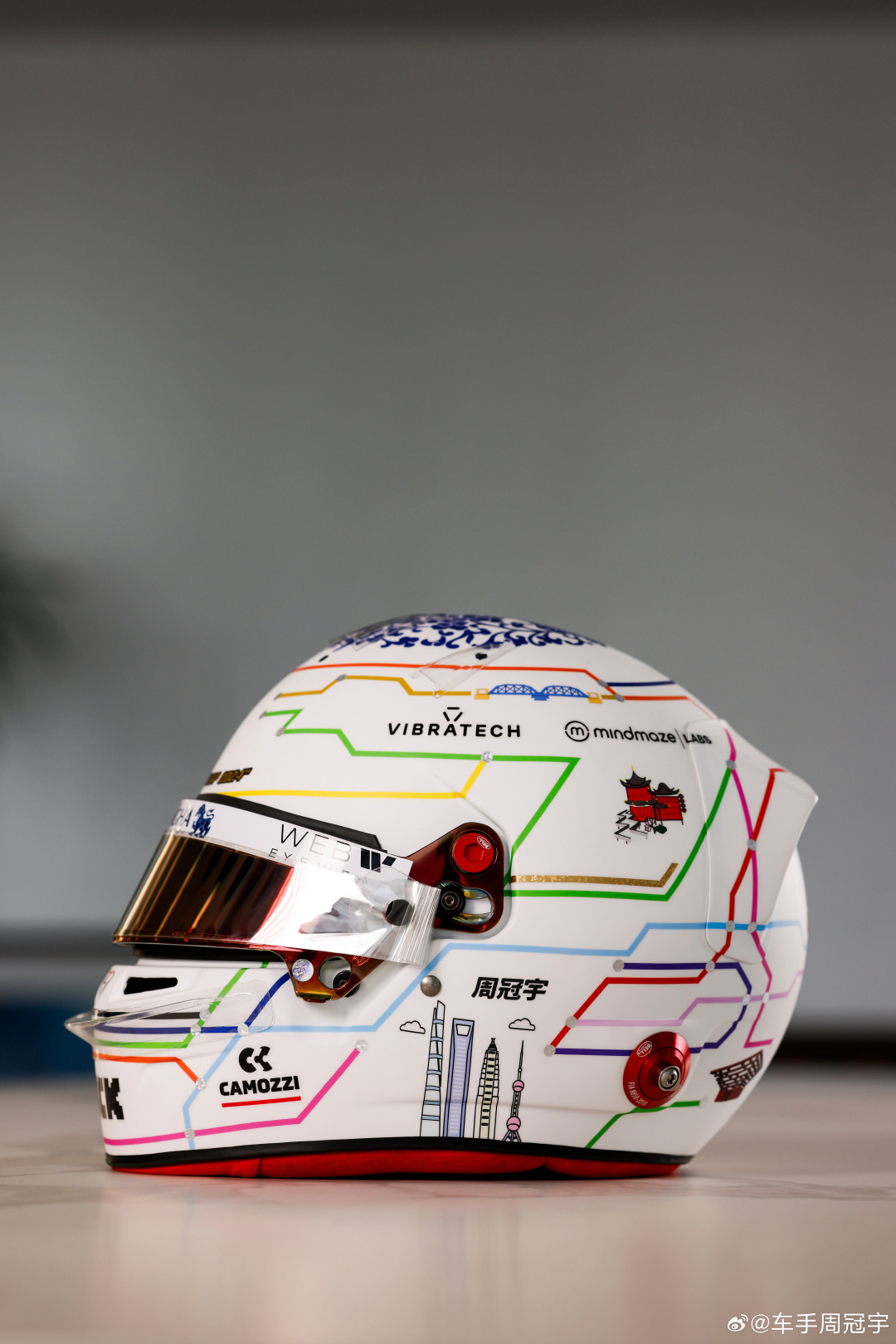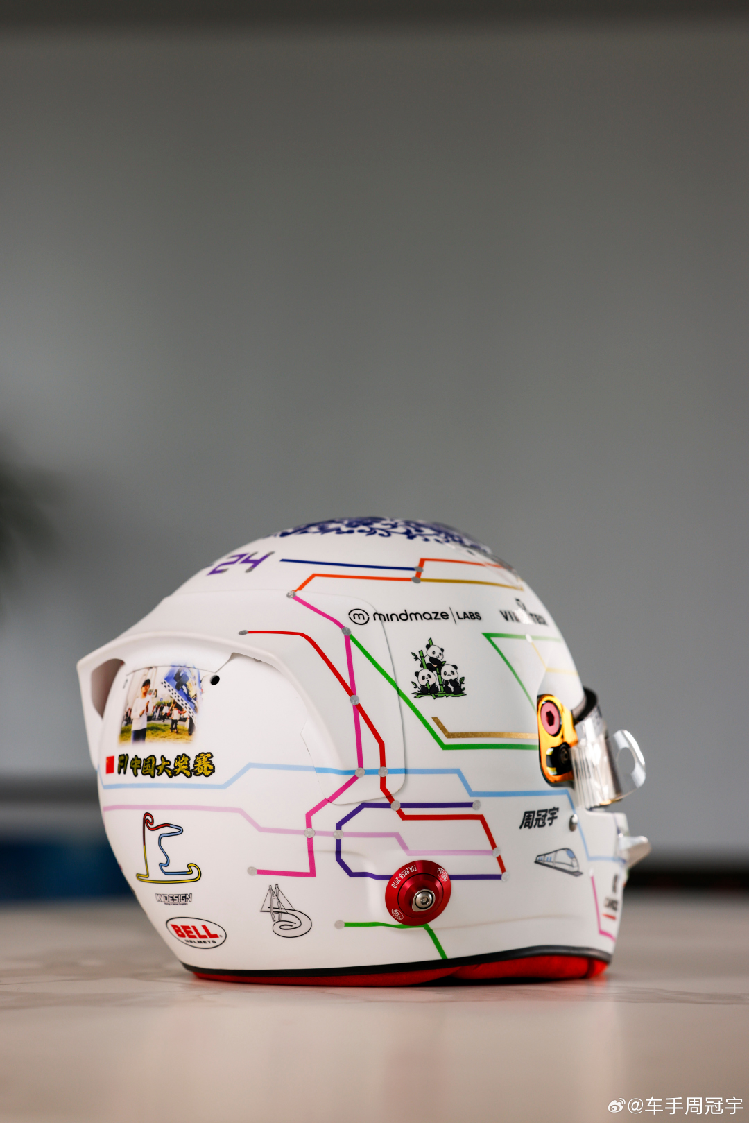 此次F1中国大奖赛在上海开赛,是周冠宇的主场首秀。他的参赛头盔也“不简单”,据周冠宇在其社交平台介绍,头盔上的图案灵感来源于上海地铁线路图,他觉得这很特别,别人从未有过。