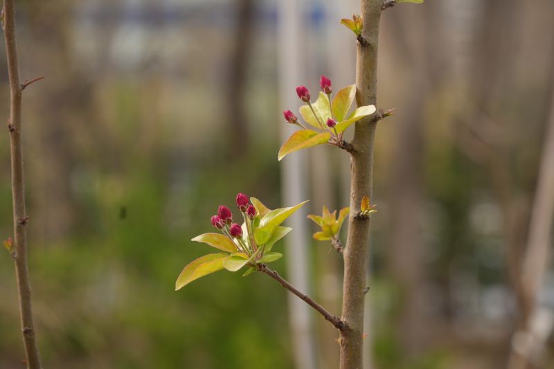 4月3日,宋庆龄故居古西府海棠克隆苗含苞待放。新京报记者王巍摄