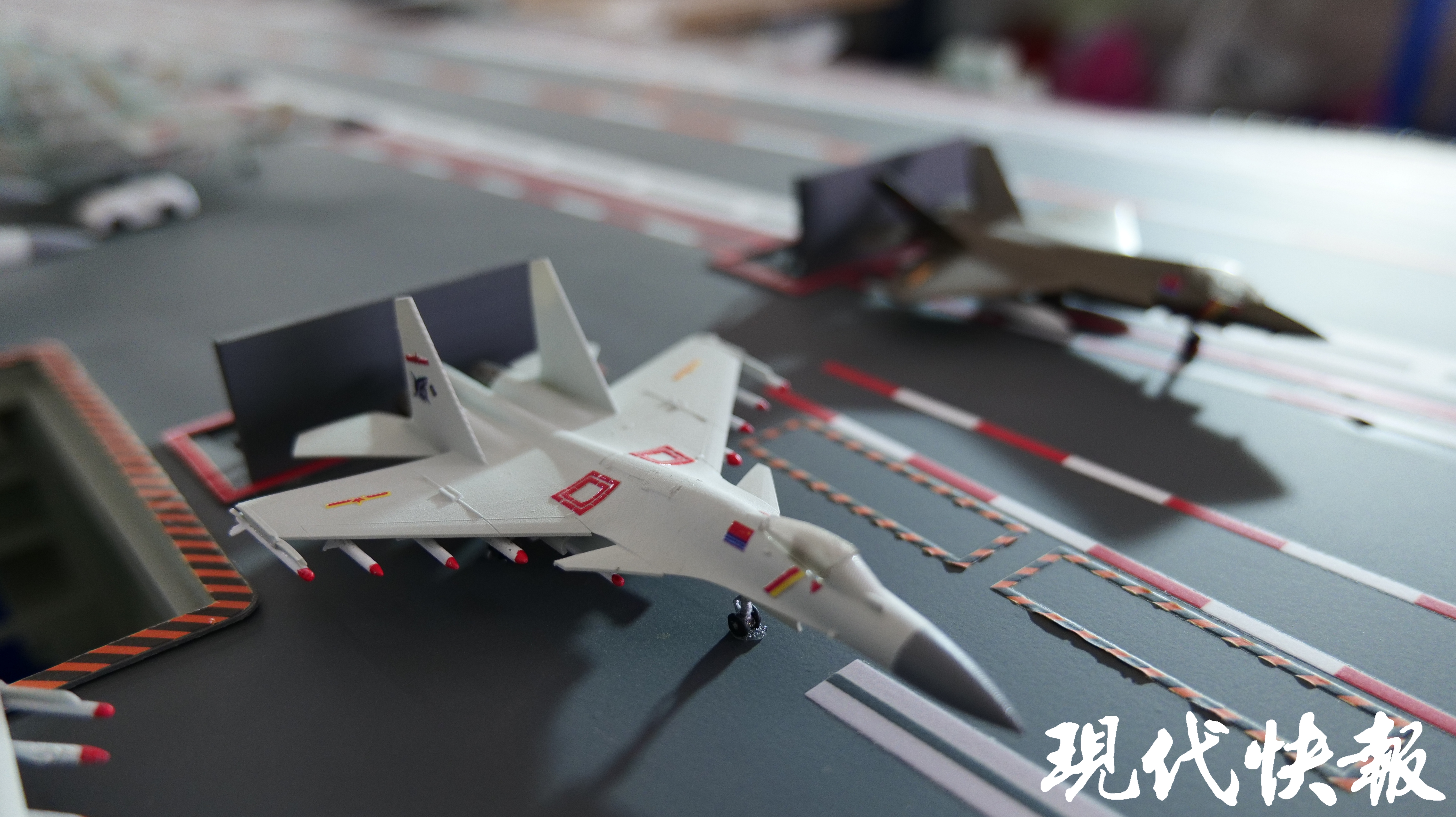 现代快报讯(记者顾潇文/摄)为了庆祝中国人民解放军海军成立75周年,扬州航模达人叶伟和他的团队,历时3个多月,制作完成了2.1米的福建舰的巨型模型。他们用一千多个零件,还原了福建舰的细节,让人非常震撼。