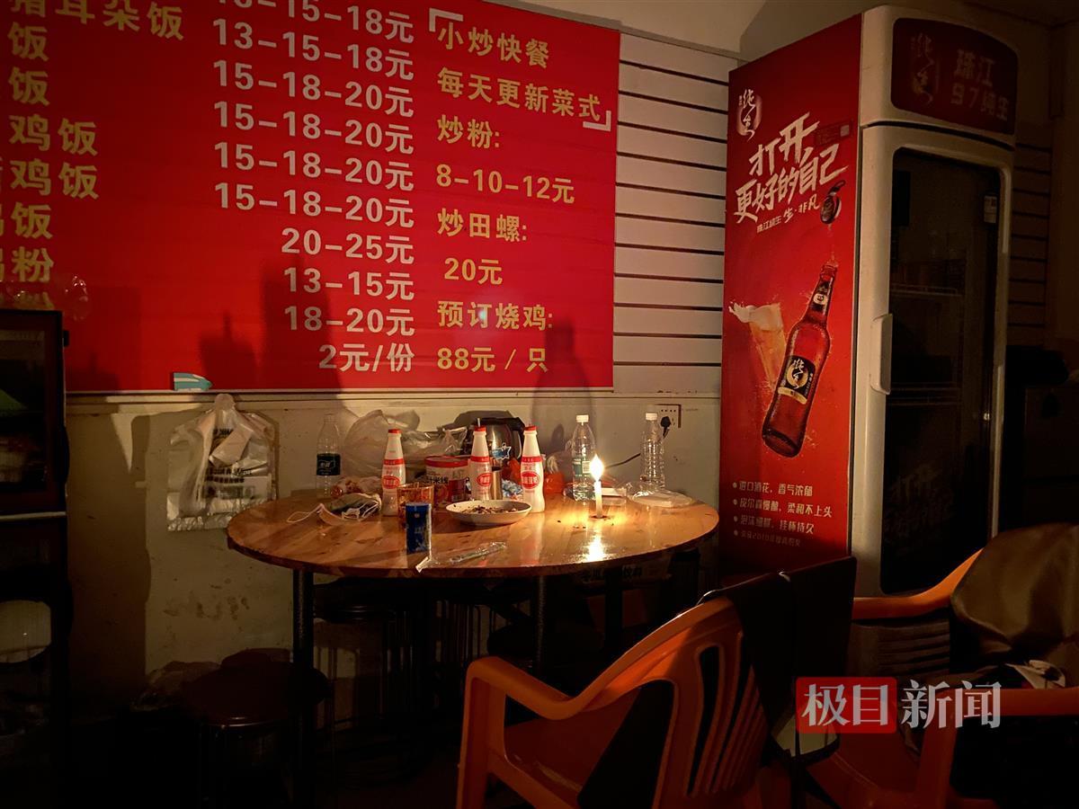 28日晚,钟落潭镇抢修复电率近9成,仍有部分商户点燃蜡烛照明