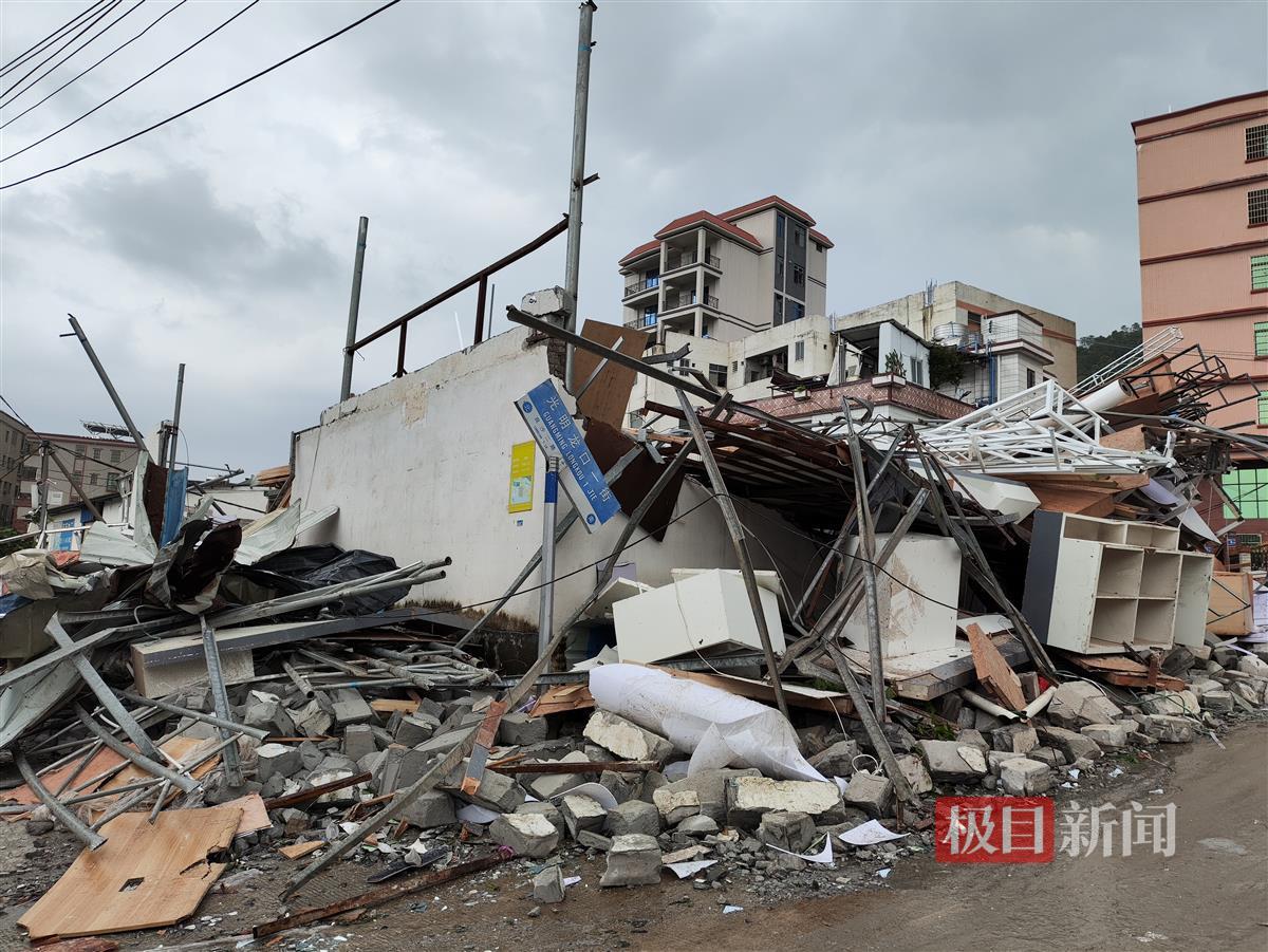在光明村中心附近路段,许多平房厂房顶棚倾覆,砖石墙面垮塌,钢筋铁板堆积在地上,一片狼藉。有工厂老板和员工一同返厂清点具体损失,并雇佣施工队到厂清理钢筋。