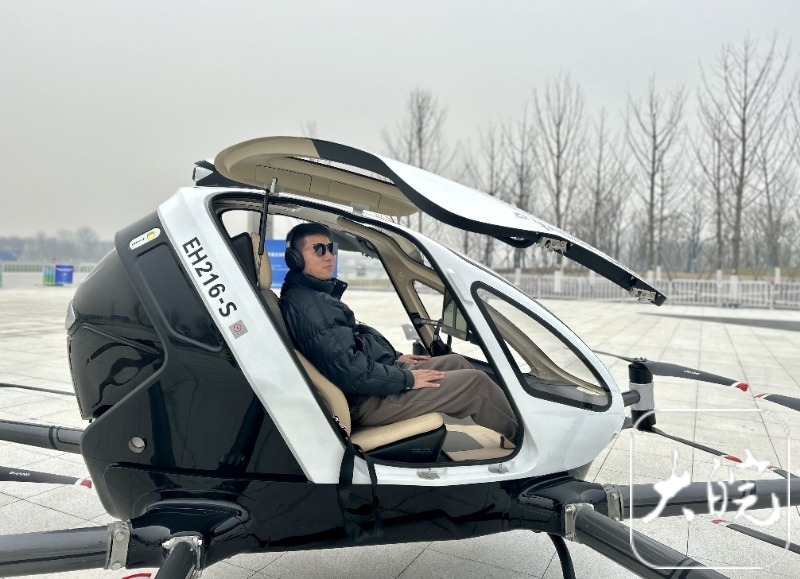 大皖新闻记者乘坐EH216-S无人驾驶载人航空器(资料图)
