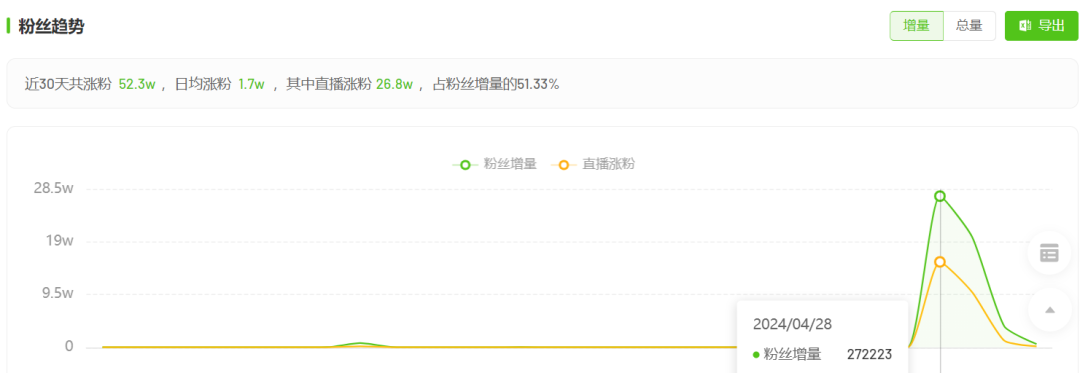 褚振亮抖音账号的粉丝趋势,截图自飞瓜数据