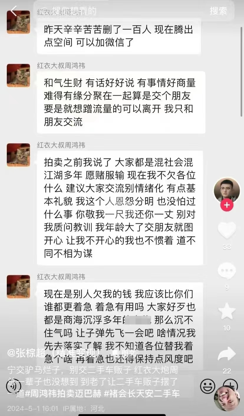 褚振亮还曾发视频称,990万元对于他个人来说不是天文数字,有足够的能力来支付,“更何况,周总给我的肯定、赋能和曝光率远远超过这个价值。”