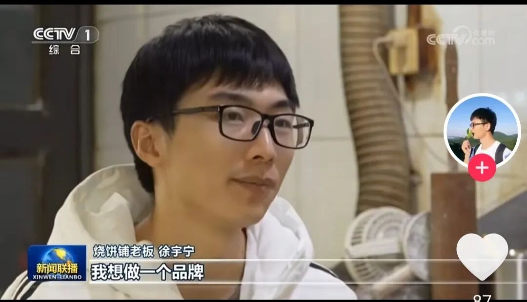徐宇宁表示他钻研改善烧饼技艺,再完善打磨烧饼馅料的供应链,通过工厂统一标准化生产,配送到店。他把开店创业故事发到了网上,“央视看到了,给我们做了个专访,朝闻天下、新闻联播都播了。”