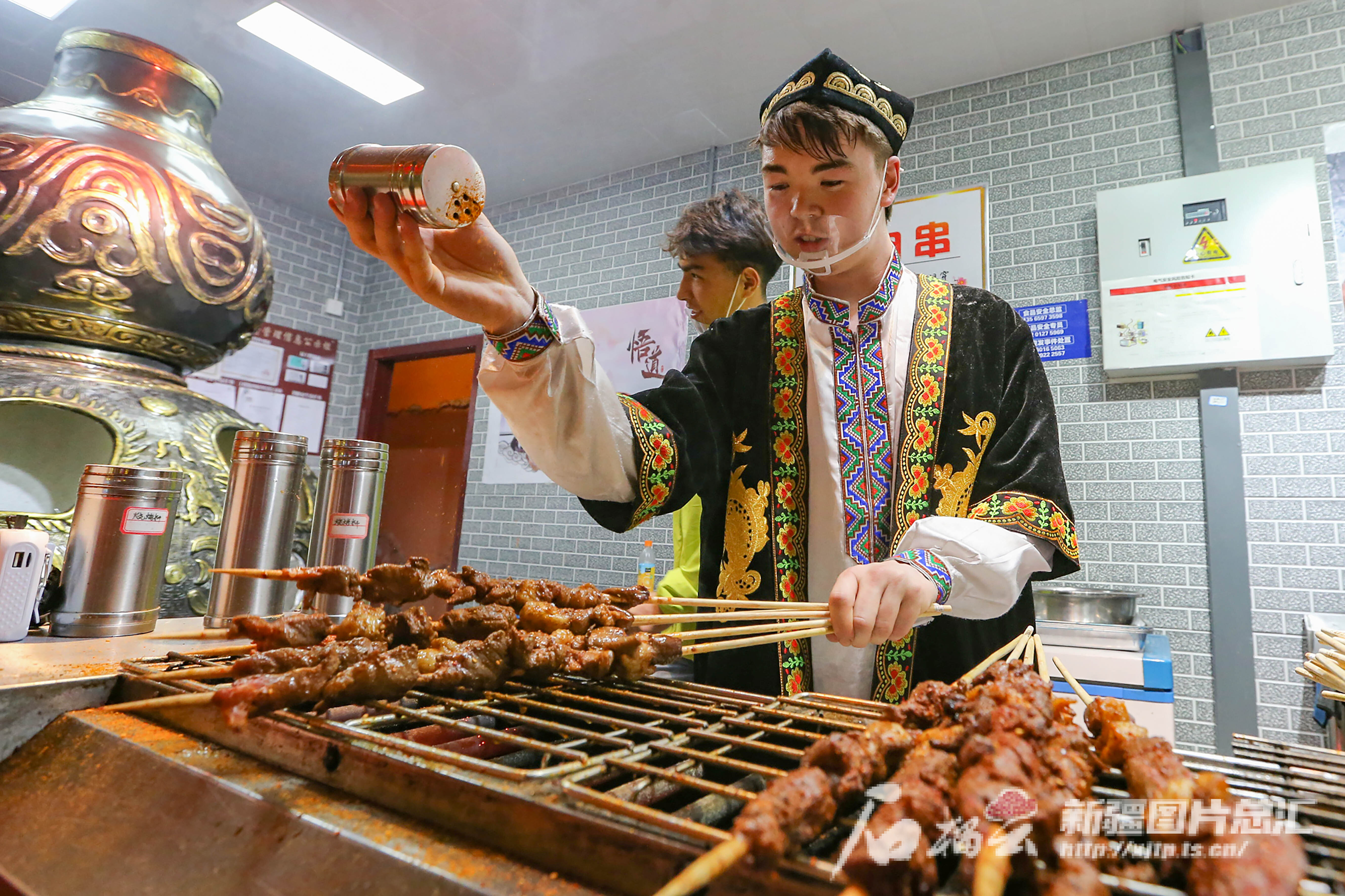 天山网-新疆日报讯(记者蔡增乐摄影报道)“生意还不错,‘五一’假期一天能卖近千串烤肉。”5月6日,天山明月城商户努尔·艾合曼提说。