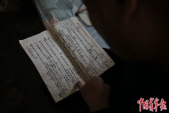 4月17日,山西代县,张宏刚坐在炕边看父亲59年前写的日记。