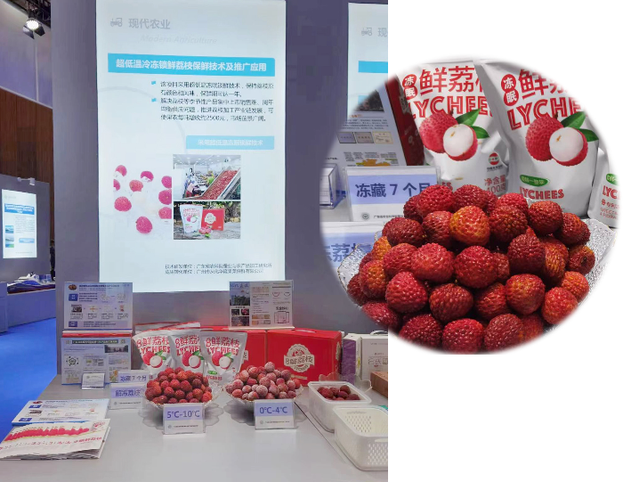据悉,去年保存的200多吨冻眠荔枝已于今年逐步推向市场。在今年广东省高质量发展大会同期举办的产业科技融合发展成果展上,冻眠荔枝首次亮相,色泽鲜艳、新鲜诱人的荔枝成为了现场的明星。