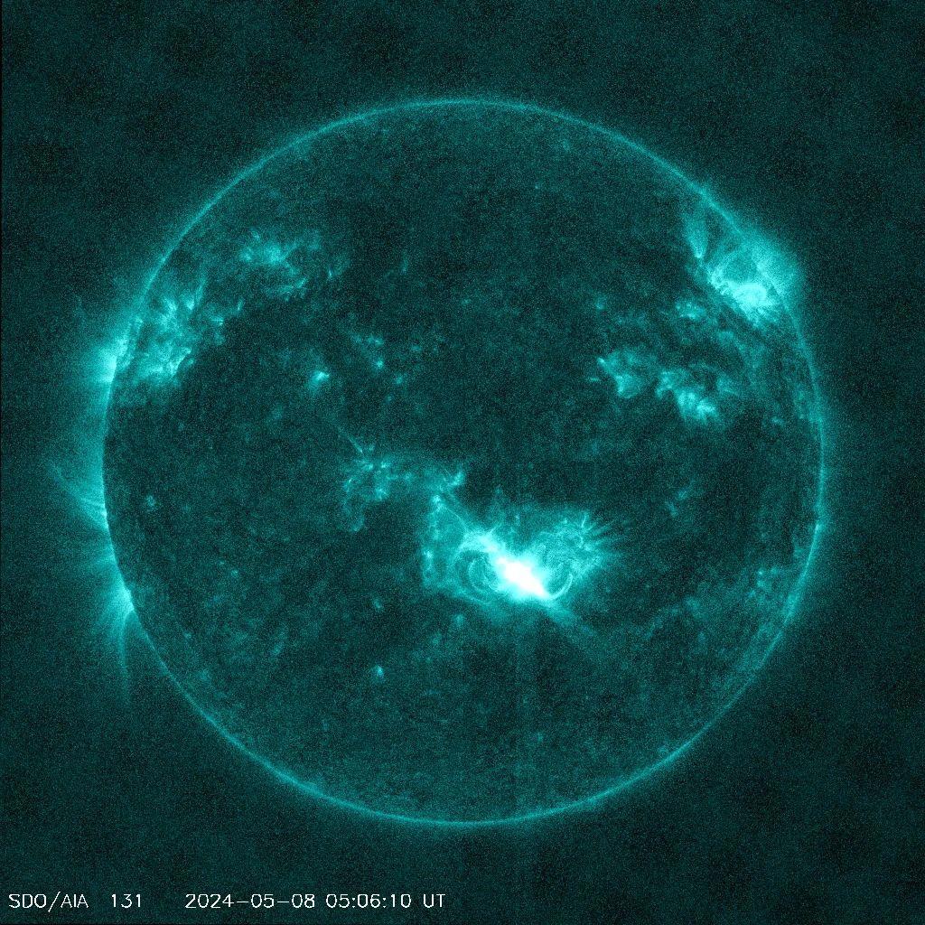 现代快报讯(记者储希豪)北京时间5月8日9时41分和13时08分,太阳发生了2次强耀斑活动,峰值强度均达到X1.0级,或将引发地磁暴。从5月3日到8日,短短6天时间里,太阳已经爆发了6次X级耀斑,刷新了第25太阳活动周纪录。
