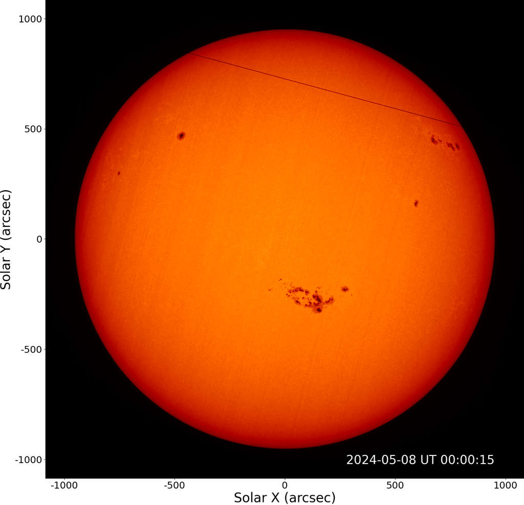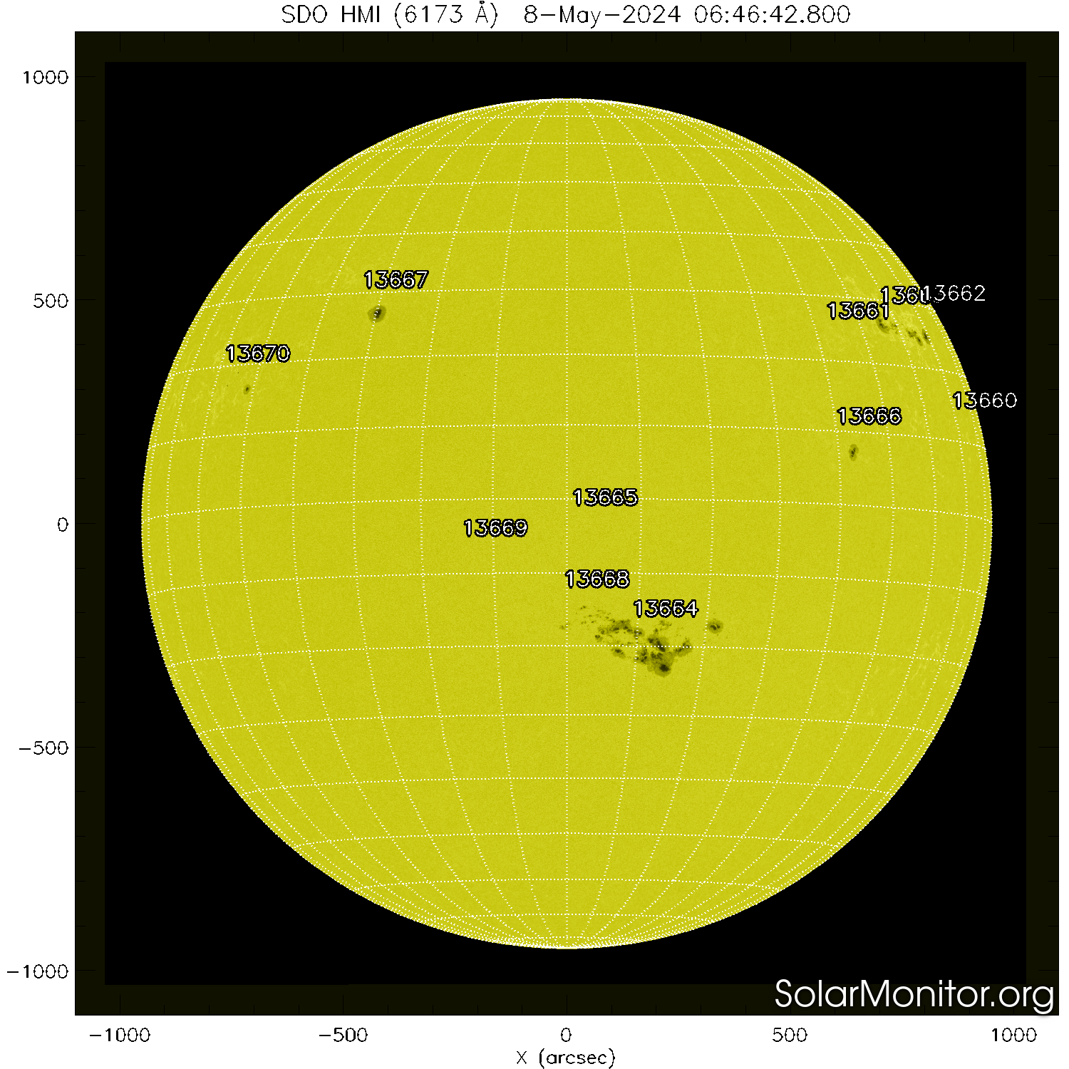 当天上午的大耀斑发生在太阳活动区13663。这个活动区形成于“五一国际劳动节”,从一个小黑点开始,随着太阳黑子的不断增多,逐渐成长为可见日面较大的活动区。在过去的6天里,已经分别爆发了X1.6级、X1.3级、X1.2级、X4.5级耀斑,其中X4.5级耀斑为当前第25太阳活动周第三强爆发。