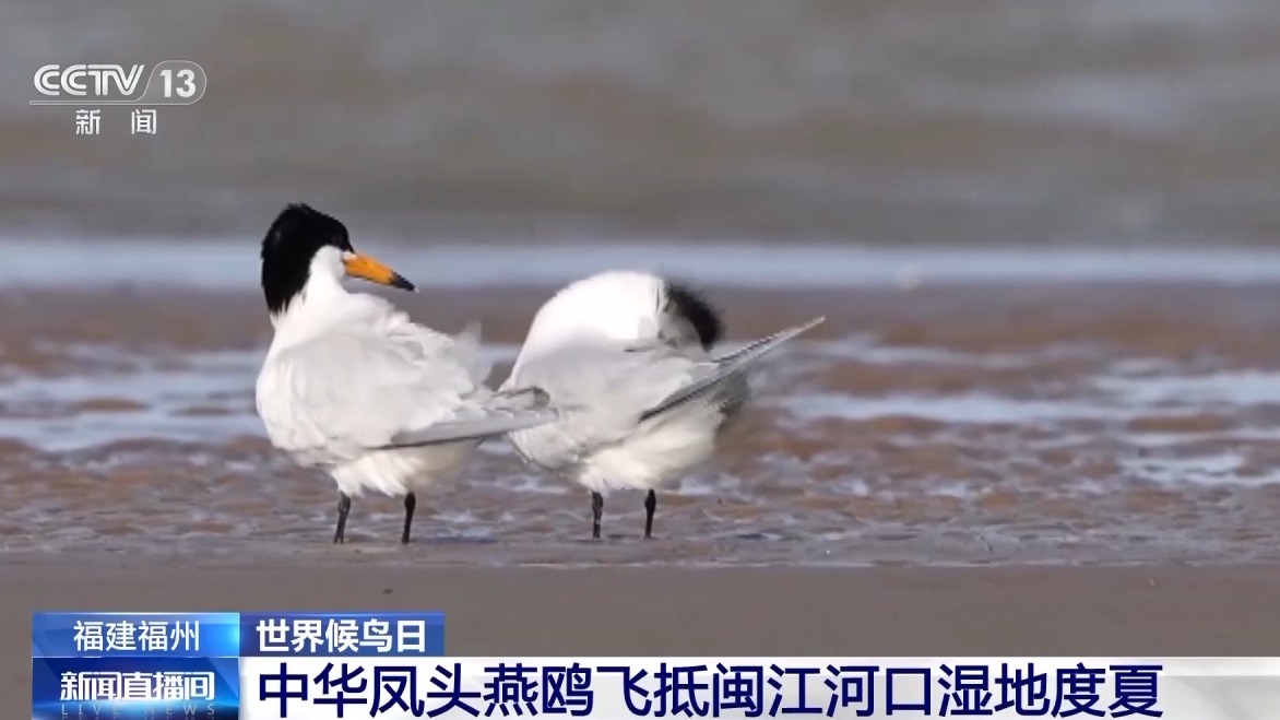 其中,中华凤头燕鸥,是全世界最为珍稀的候鸟之一。每年的四五月份,一部分中华凤头燕鸥就会来到闽江河口湿地度夏,它们全身洁白,头顶上有黑色的冠羽。