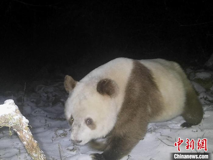 中新网陕西汉中5月11日电(记者阿琳娜)记者11日从陕西长青国家级自然保护区获悉,保护区工作人员在整理大熊猫及栖息地监测数据时,发现布设于野外的红外相机近距离捕捉到一只健康成年棕色大熊猫在雪地中悠闲踱步的身影。
