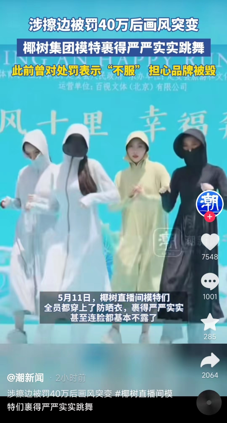 椰树被罚后“穿防晒衣”跳舞视频再引关注