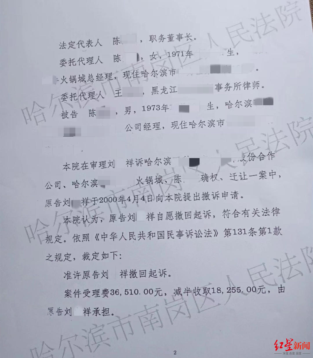 此后,刘某祥申请撤诉。2000年4月,哈尔滨中院裁定准许撤诉。