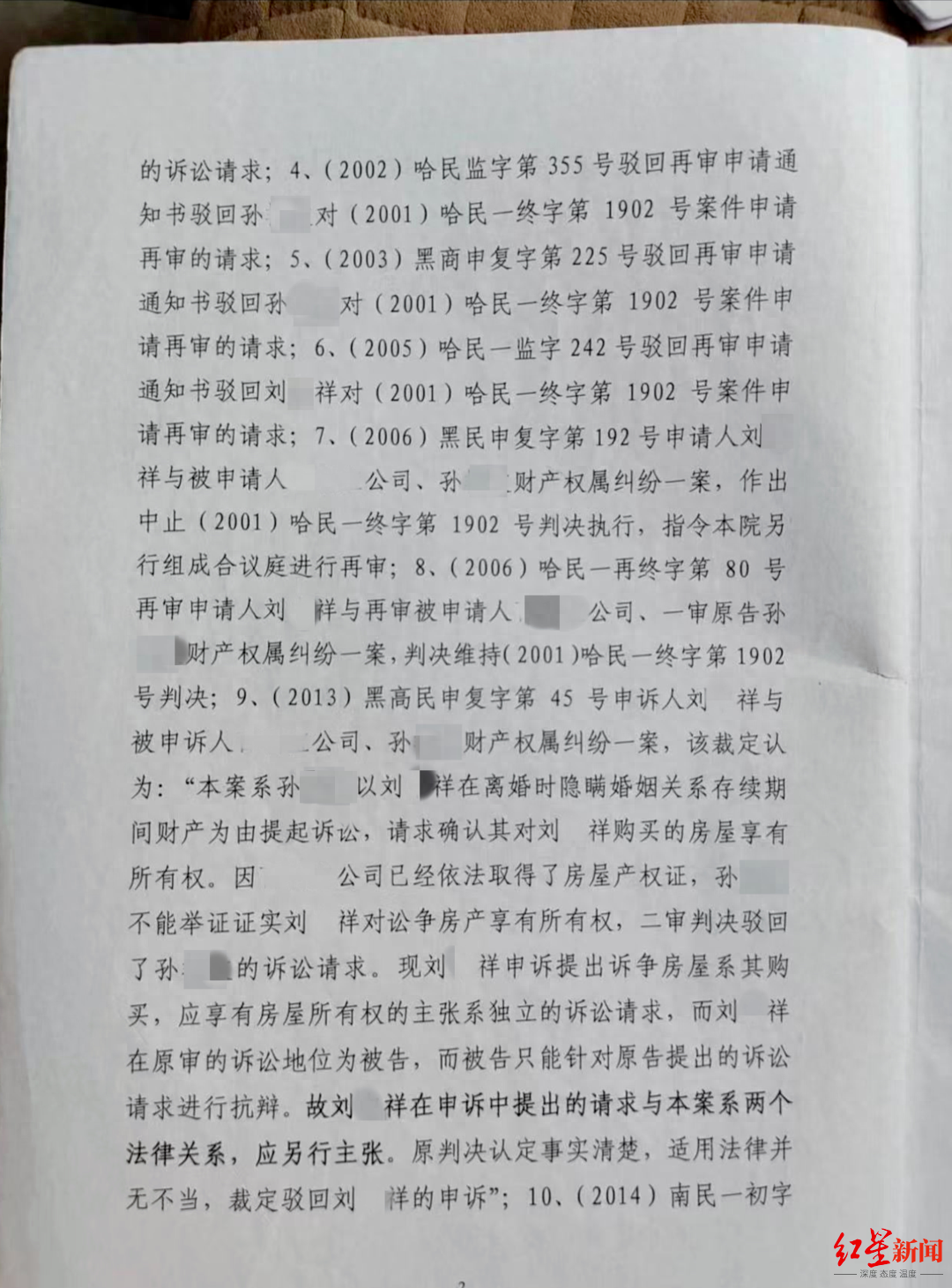 邢女士称,1997年5月,刘某祥计划在哈尔滨市开一家酒店,并投资530万元购买了哈尔滨市南岗区的一幢楼房。没有想到,这幢楼房却成了刘某祥夫妻与外甥陈某两家之间持续20余年、多轮诉讼的导火索。