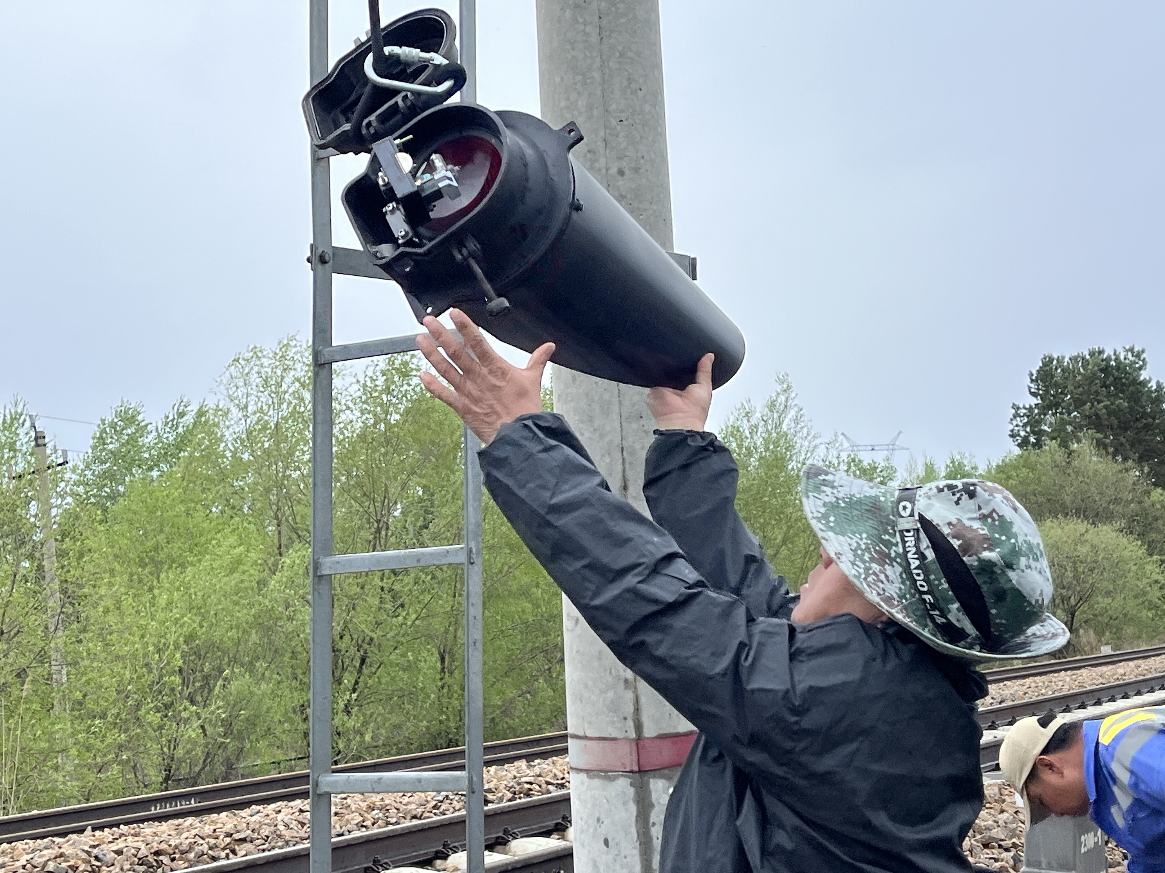 5月10日7时,在黑龙江省绥佳铁路线上,中国铁路哈尔滨局集团有限公司哈尔滨电务段开始更换信号机LED发光盘,预计将更换199组信号机。更换后将灯显更亮、耗能更省、故障更低。