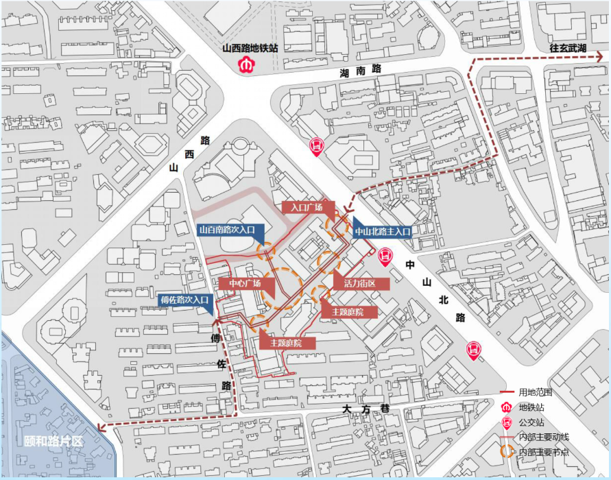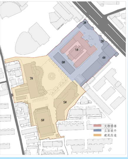 该地块原功能主要为商业、文娱及各类餐饮,后按政策要求停止对外经营,现委托融通地产(江苏)有限责任公司经营管理。为盘活资产,提升城市形象,该公司计划对地块进行修缮及改造,主要内容为:文物修缮,外立面改造,场地景观提升,拆除部分零星建筑,增加敞开空间,不增加总面积的基础上进行还建,改造不增加建筑高度、不涉及相邻关系改变。地块改造后延续商业功能,打造历史文化与城市商业的结合体,涵盖零售、文娱、餐饮等功能。