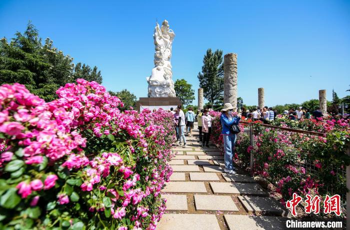 5月15日,民众在莱州中华月季园赏花。徐嘉艺摄