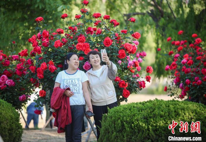 5月15日,民众在莱州中华月季园赏花。杨馥宁摄