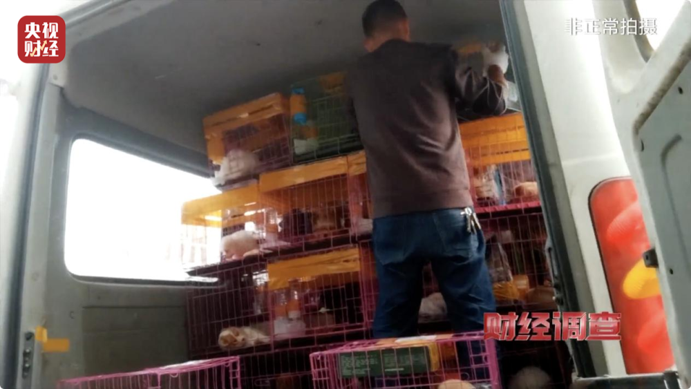 根据记者的观察,在沛县宠物市场,一旦买家支付金额,代购就会立即将宠物送到这里的运输点。每天傍晚,这些宠物就会被运输商家装上不透气的面包车运输到全国各地。