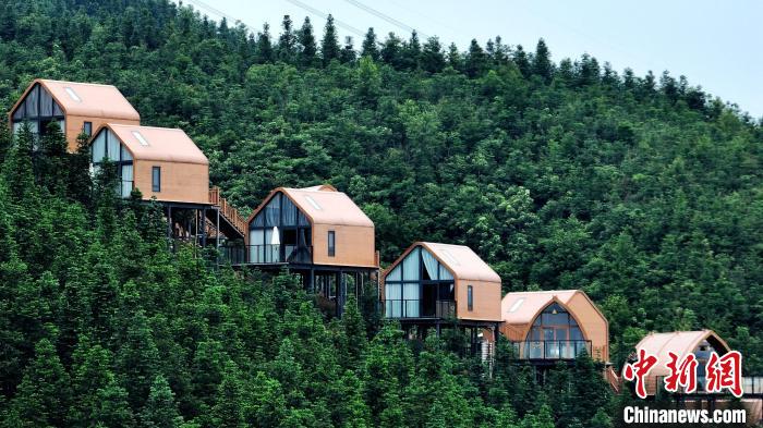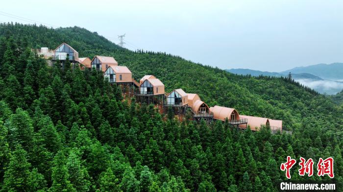 图为航拍广西三江侗族自治县易地搬迁万亩茶园振兴产业园的特色民宿。龚普康摄
