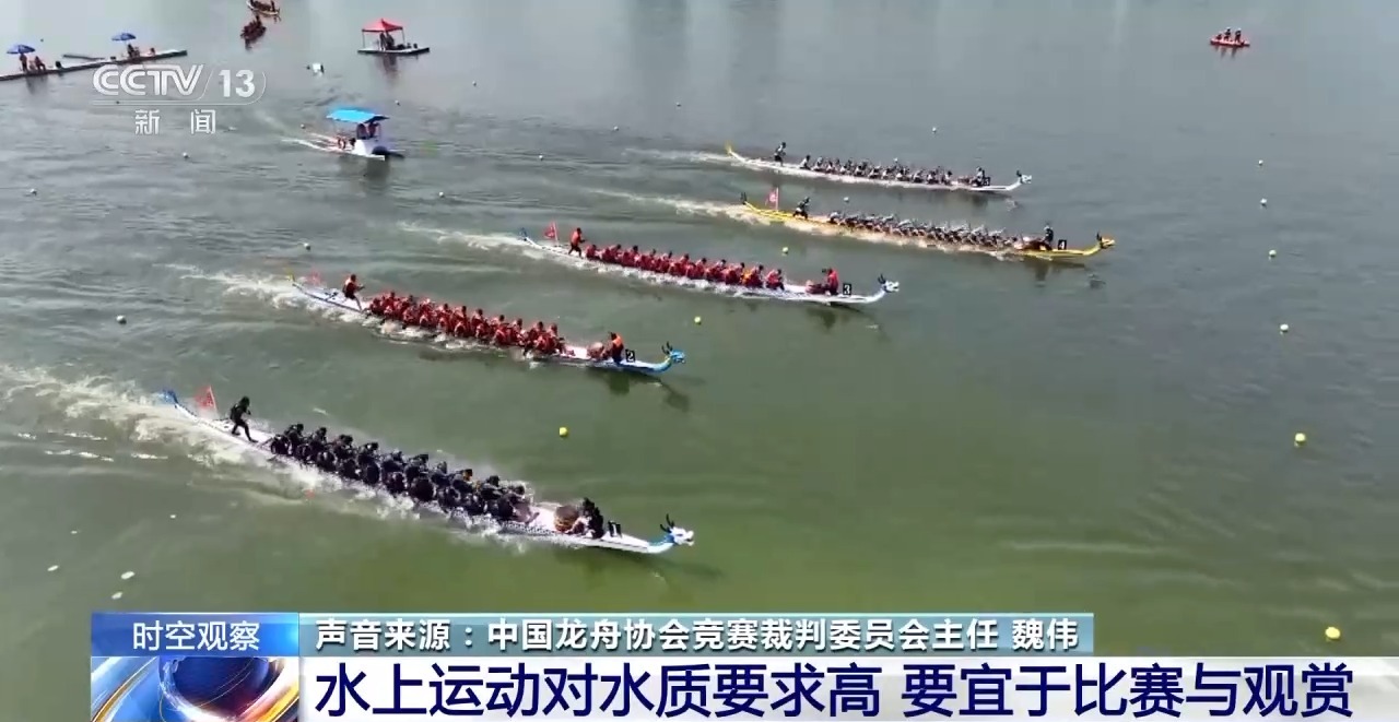 中国龙舟协会竞赛裁判委员会主任 魏伟:龙舟比赛是一个水上项目,水域好坏、有没有污染很重要。特别是有一些污染过的垃圾、水,会对运动员的皮肤、呼吸道会有直接的影响。如果水质达不到龙舟比赛条件的话,它是不能举办比赛的。