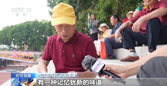 九江市市民 欧阳美谦:有一种记忆犹新的味道,睹物思船、思舟。现在有这么好的水质,在这里进行游泳活动、划船活动,没问题了。
