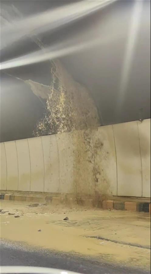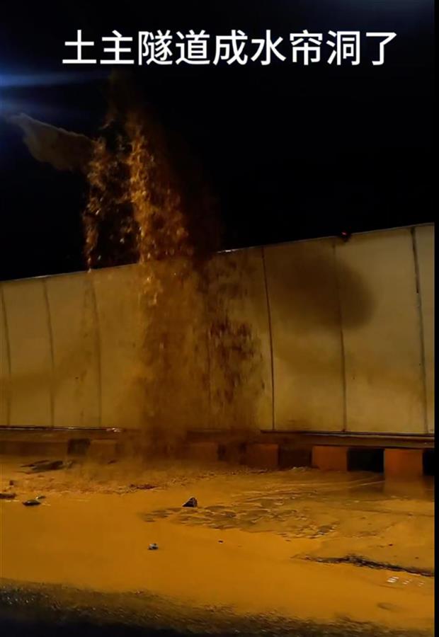 土主隧道渗水情景(网络视频截图)