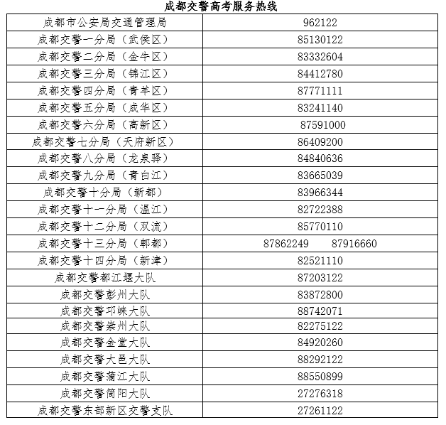 交管局公布各级交警部门“畅通高考服务热线”电话