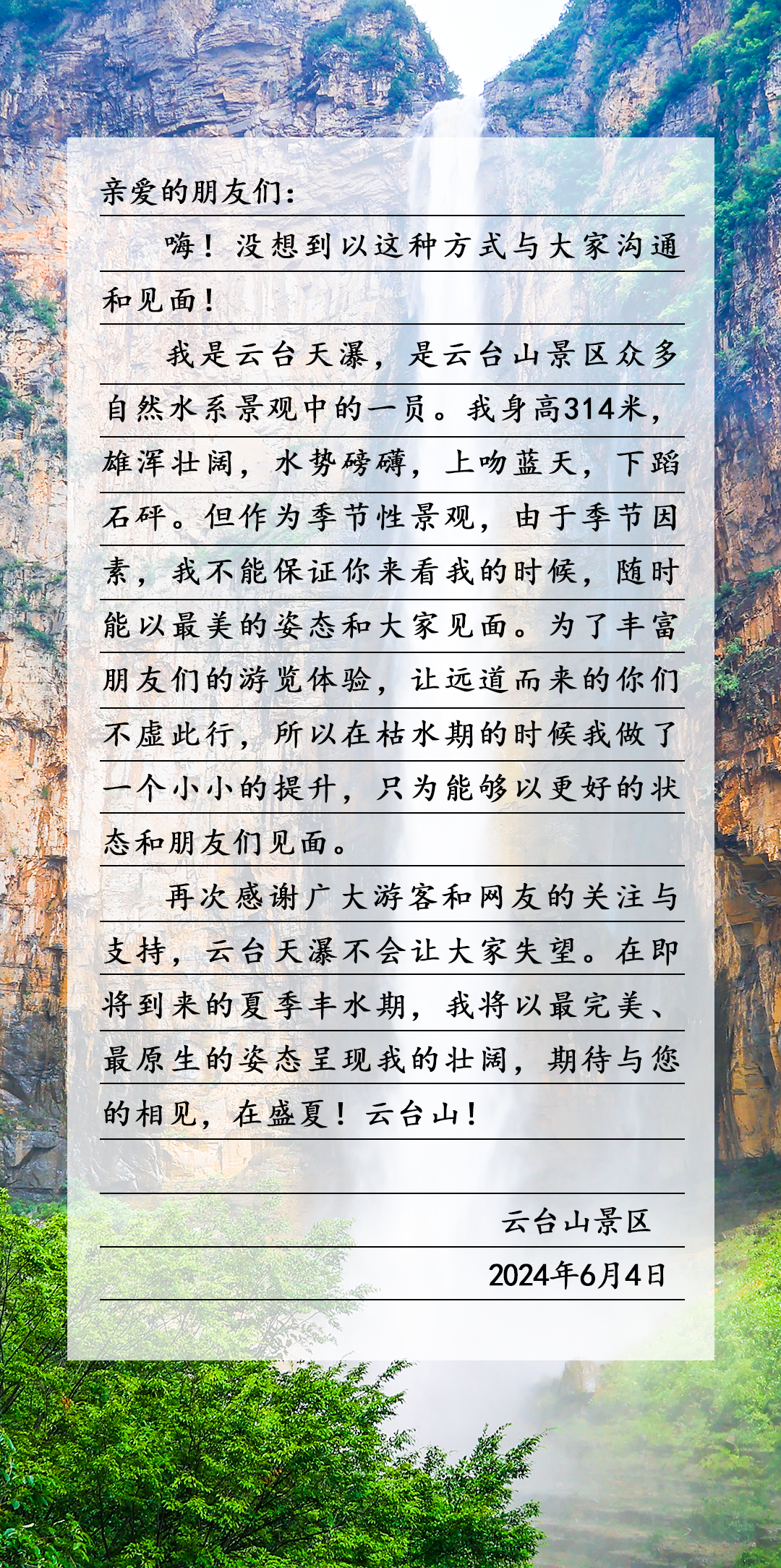 日前,云台山景区就网友反映的云台天瀑通过“管道送水”制造瀑布回应,由于季节因素,枯水期做了一个小小的提升,夏季丰水期,将以最完美、最原生的姿态呈现。